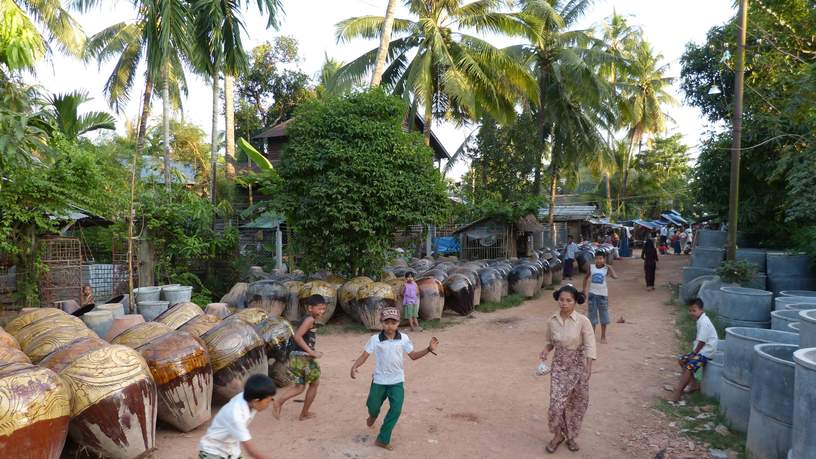 Samen met de gids neem ik de ferry vanuit Yangon naar Dala. Een plattelandsdorpje waar het leven een stuk langzamer gaat dan in Yangon. Het is er landelijk en onontwikkeld. Er komen hier maar weinig toeristen en er wordt dan ook vrolijk gezwaaid en gelachen naar me. Er wacht een tuktuk die mij naar de werkplaats van Chu Chu brengt. Een werkplaats die gedeeltelijk gebouwd is met plastic flessen en oude autobanden. Chu Chu betekent plastic zak in het Birmees en het is een sociale onderneming opgericht door Cesyi. Een Italiaanse NGO die graag schatten zoekt in de vuilnisbakken van Yangon. Door dit weggegooide materiaal te upcyclen wil het bedrijf niet alleen de straten opruimen, maar ook training, werkgelegenheid en een regelmatige bron van inkomsten bieden aan de anders benadeelde betrokken families. Het upcyclen wordt gedaan door lokale families in Dala. Elke familie neemt de verantwoordelijkheid voor de productie van specifieke items. Gezinnen verkopen hun artikelen vervolgens via Chu Chu. Wat je koopt komt direct ten goede aan de families. Wat word ik hier blij van een project als dit. Het geld vliegt mijn portemonnee uit maar dat maakt niks uit.