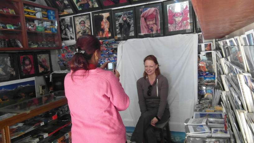 Voordat ik aan de trekking begon moest het permit in orde gemaakt worden, inclusief pasfoto’s. Dit permit is nodig om toegang te krijgen tot de Annapurna Conservation Area. Wat was ik blij dat ik mijn pasfoto’s vanuit Nederland vergeten was. Onze lokale contactpersoon, bij wie we de trekking geboekt hadden, nam ons mee naar een winkeltje in Kathmandu. “Kunnen we hier pasfoto’s maken?”, vroeg ik mij hardop af. Ja hoor, je gooit gewoon een wit laken over de achterwand van de winkel en je hebt een primitieve fotostudio. Een behulpzame Nepalese dame maakte de foto’s en het klusje was geklaard. Ik was twee pasfoto’s en een ervaring rijker.