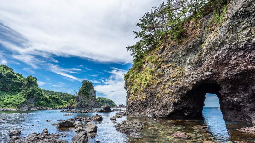 Al snel merken we dat het schiereiland groter is dan we dachten. De wegen zijn uitstekend maar de afstanden zijn flink. Dat betekent dat we keuzes moeten maken wat we willen zien vandaag. We stellen de navigatie in op de Hatago Iwa rotsen aangezien deze op ons wensenlijstje staan. De ruige kustlijn is hier prachtig en opeens doemen er twee verweerde rotsen op in zee. De twee Hatago Iwa rotsen zijn verbonden door een touw en op de grootste rots staat een klein heiligdom. Men zegt dat de 2 rotsen een getrouwd paar voorstellen.