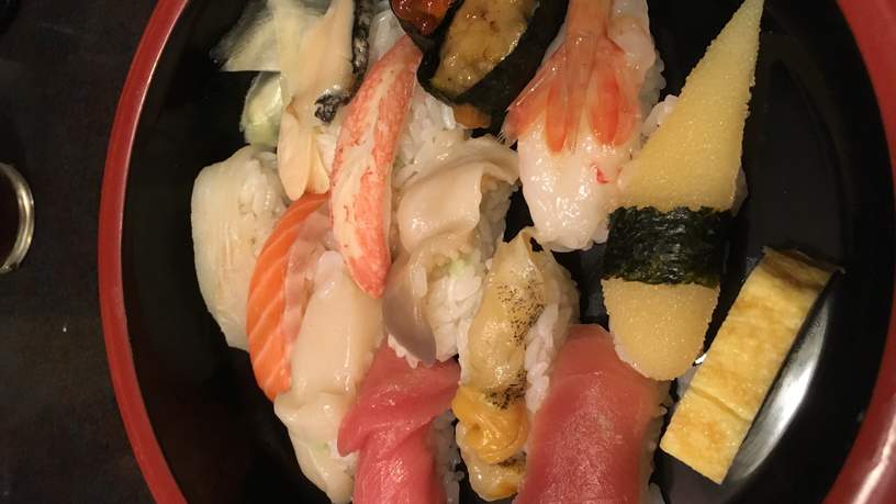 Aan het einde van het kanaal staan een aantal sportieve jonge mannen met riksja’s (looptaxi’s). Ik bedank vriendelijk voor het aanbod om rondgereden te worden en wandel op eigen houtje naar Sakaimachi Street. Deze straat vormt het hart van het centrum. Er zijn voornamelijk restaurants, winkeltjes en glaswerkboetiekjes. Otaru staat bekend om het kleurrijke glaswerk dat er gemaakt wordt. In verschillende winkels is het mogelijk om zelf aan de slag te gaan met een eigengemaakt glaskunstwerk. Naast het vele glaswerk dat wordt aangeboden in Sakaimachi Street, valt het me ook op dat er veel Halloween- en kerstdecoratie hangt. Na een kort praatje met een winkelier blijken de Japanners dol te zijn op feestdagen en beginnen ze al vroeg met het aankleden en decoreren van hun winkels. Waarom ook niet? In Nederland liggen de pepernoten ook al weken voor Sinterklaas in de schappen! Al die lichtjes en decoratie maken het in de avond overigens erg sfeervol en gezellig. Naast het glaswerk waar Otaru bekend om staat, is ook de sushi van verse vis een van de redenen voor een bezoek aan Otaru. Ik stap een eettentje binnen en krijg een prachtig geserveerde ronde schaal met sushi voorgeschoteld. Smullen!