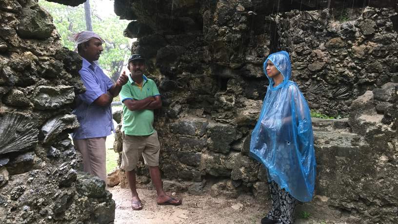 De volgende dag staat er een bijzondere excursie op het programma; een bezoek aan het eiland Delft. Delft kent een rijk koloniaal verleden. Vanaf 1658 maakten de Nederlanders er de dienst uit totdat in 1796 het eiland in handen kwam van de Britten. Het weer ziet er goed uit vanuit onze hotelkamer. Hopelijk blijft het droog vandaag. We vertrekken om 06.30 uur met onze twee gidsen naar de pier. Een rit van anderhalf uur, wat een mooie tocht! Het is een weg met aan beide kanten water en overal vogels. In bepaalde maanden blijken hier zelfs flamingo's voor te komen. We passeren drie eilandjes voordat we bij de pier aankomen. Ik had graag even gestopt om rond te lopen op de eilandjes.